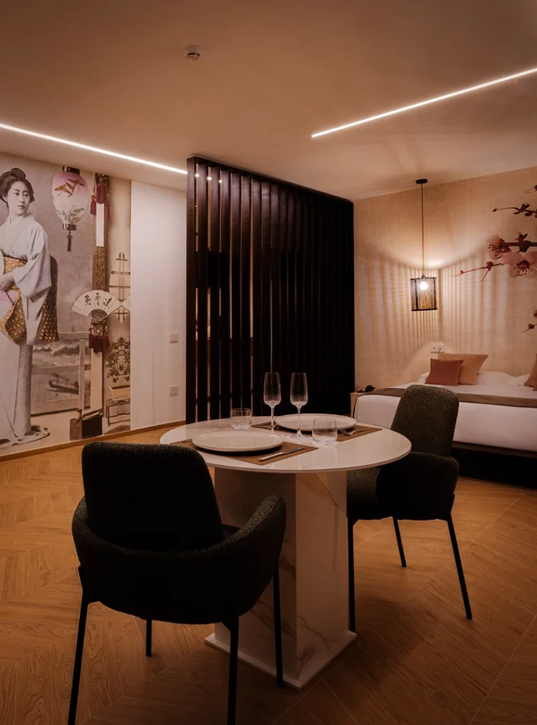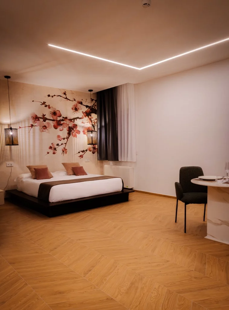 Ispirata alla grazia del minimalismo giapponese, Tokyo è una suite che celebra l’equilibrio. Legni naturali, luci soffuse, profumi di ciliegio e bambù accolgono in un ambiente sospeso tra eleganza e spiritualità.