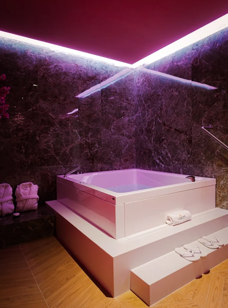 Infine, l’area relax accoglie tra luci morbide e infusi orientali: un ritorno consapevole alla calma profonda.
